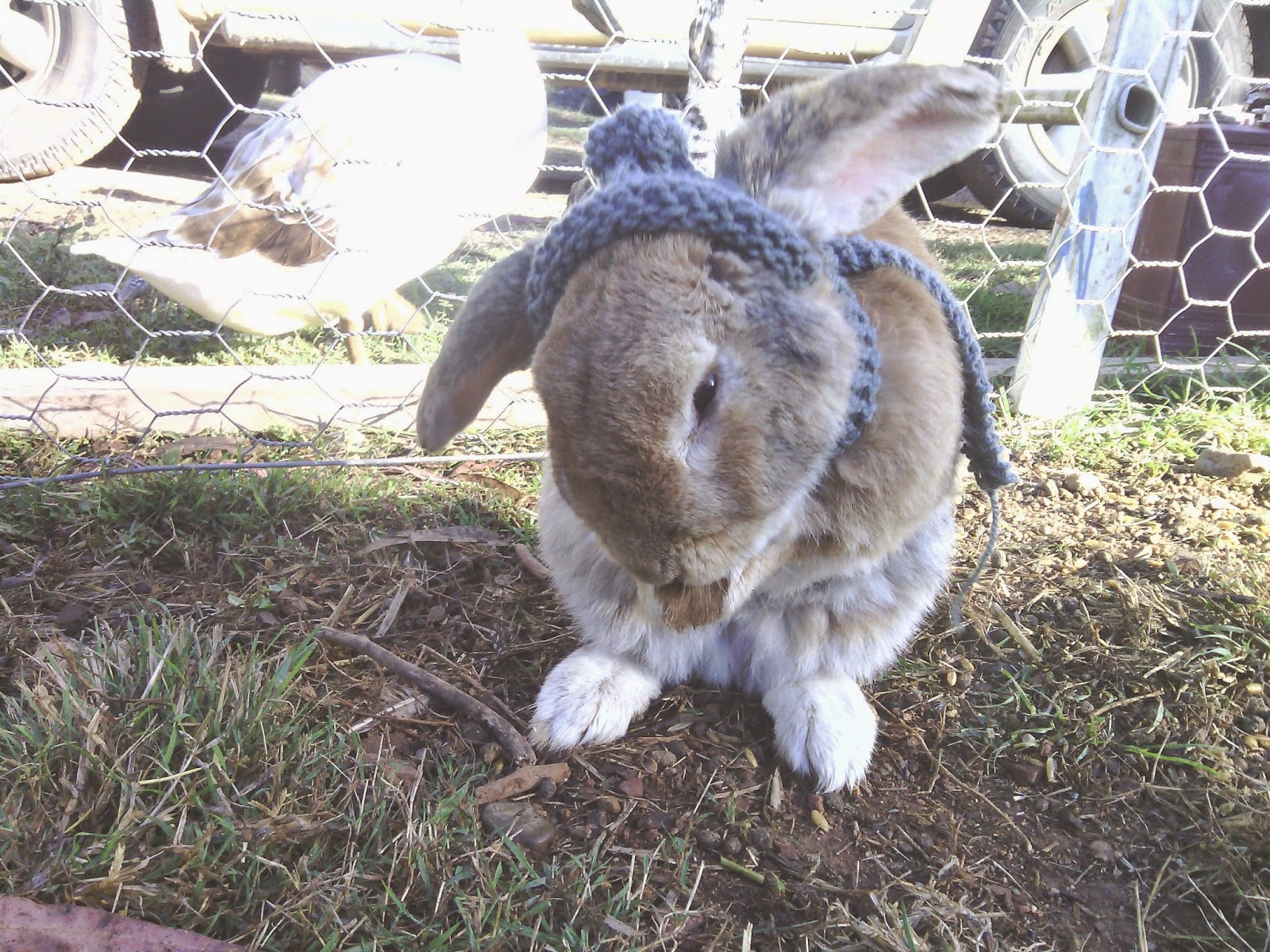 | Rabbitto, wearing the hat and scarf my daughter made for him (reluctantly) |